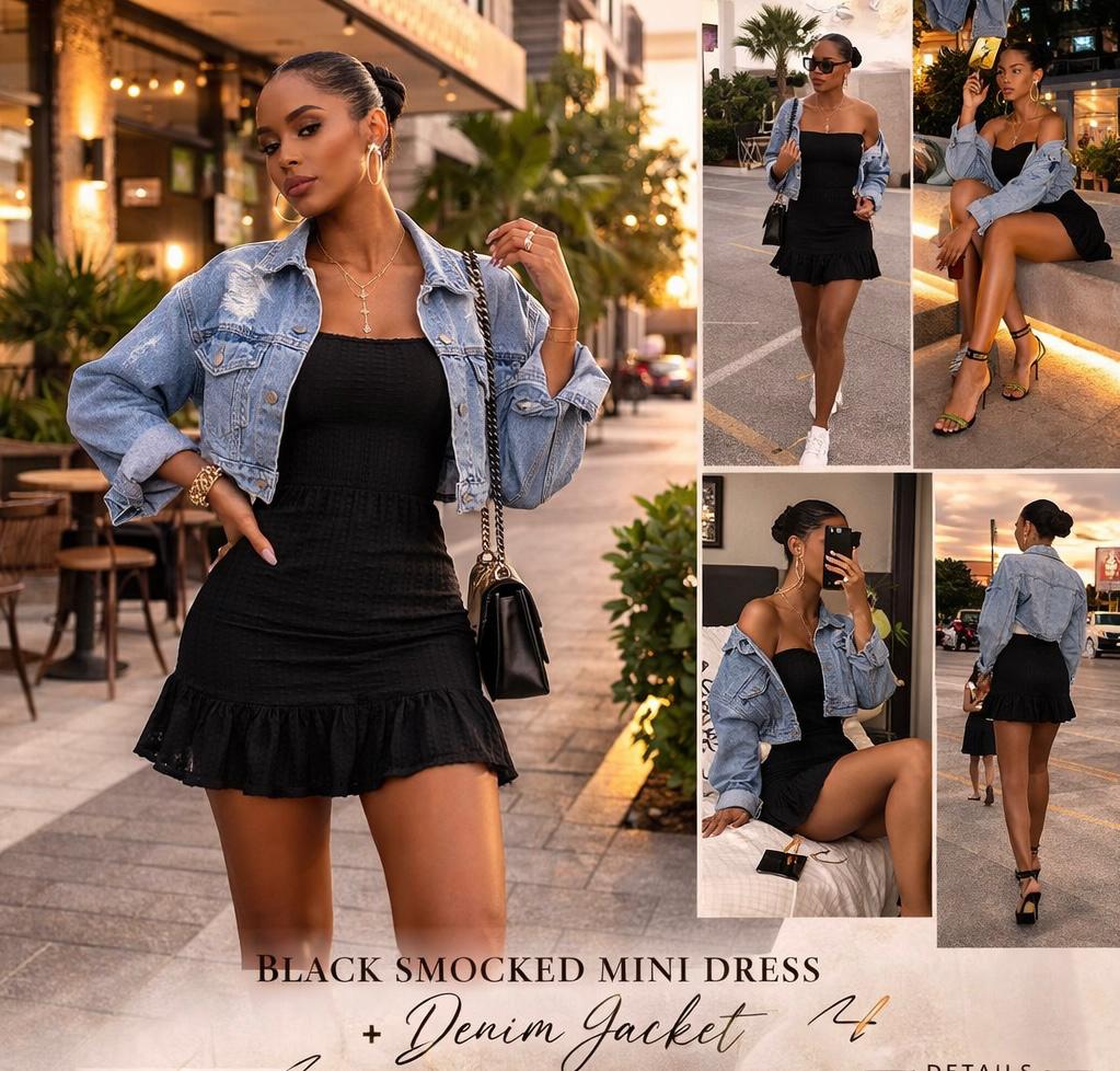 Be the first to review “Black mini dress & denim jacket”